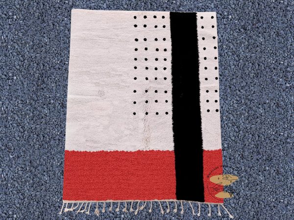 The Red Moroccan Rug, particularly the Beni Ourain 8×10, is a vibrant choice that captivates the eye with its bold red color contrasted by black diamond motifs. This rug does not just cover a space; it transforms it, adding a splash of color and a touch of Moroccan flair that is sure to impress.